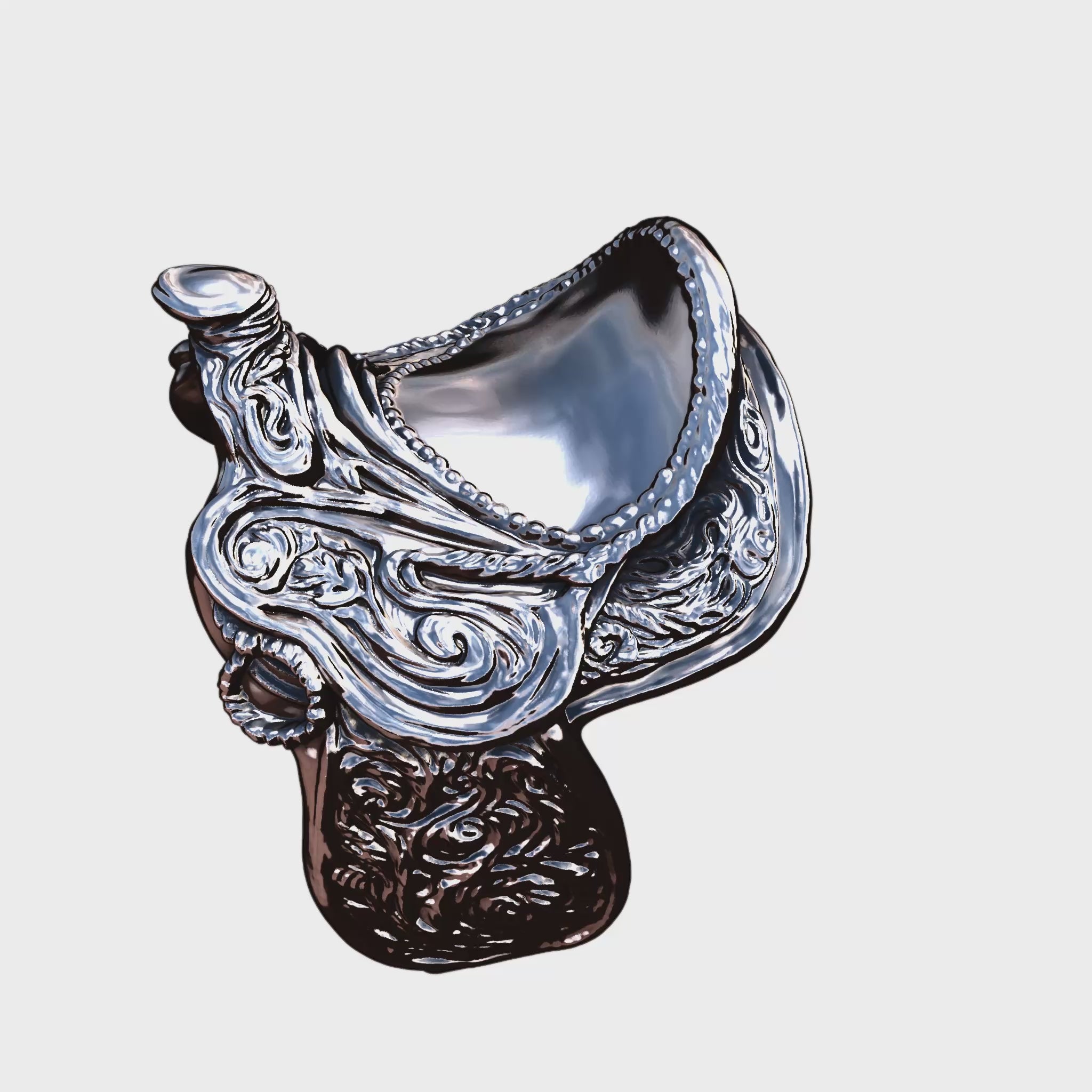 “Leather in Silver an ode to rebellion in the ring. Built like a saddle. Worn like a dare.”